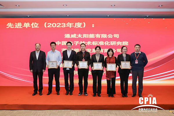 12月15日,由中國光伏行業協會標準化技術委員會主辦,在江蘇宿遷召開中國光伏行業協會標準化技術委員會2023年年度工作會議。會上宣讀在研標準進展、頒布百團標準證書和表彰先進單位。通威太陽能榮獲“2023年度標準化工作先進單位”,通威太陽能雙流基地電池質量部負責人黃水華獲評“2023年度標準化工作先進個人”。