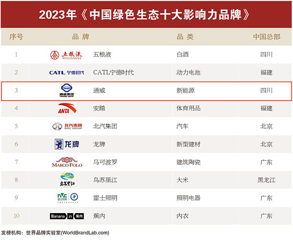 通威榮列“中國(guó)綠色生態(tài)十大影響力品牌”榜單