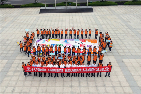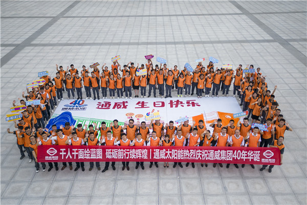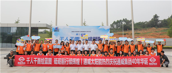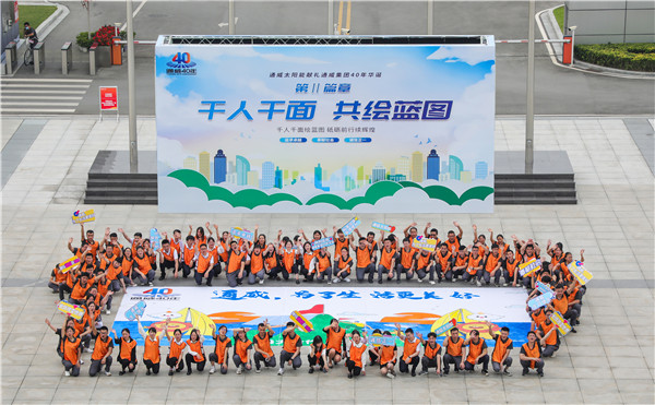 本次活動,通威太陽能組織各基地生產、職能體系,組成千人團,以獻禮集團 40 年為主基調,特別策劃設計“通威,為了生活更美好”“光伏改變世界”“通威,生日快樂”“千人千面·共繪藍圖”“揚帆起航 再續華章”五大主題巨幅畫卷,由各基地各部門千名員工進行繪畫創作,齊看通威今朝融合發展之精彩,共展通威未來發展之宏圖。
