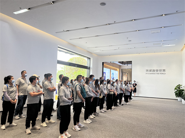 活動中,通威食品“文化尋根團”還走進通威太陽能眉山基地,在一項項實時數據和廠區微觀全景沙盤的展示下,全面了解通威雙綠色產業鏈布局、發展成就,以及通威太陽能在自動化生產、綠色發展等方面作出的重要貢獻。走進無人制造車間,一支支特殊的機械臂有序揮舞,一輛輛無人駕駛的IGV小車往來穿梭,全封閉的智能制造高效太陽能電池片自動化生產線高速運轉,充分展現了通威智能智造的領先實力,大家的自豪感油然而生。