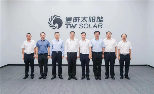 6月15日,遼寧省沈陽市委副書記、市長呂志成一行蒞臨通威考察交流,通威股份副董事長嚴虎熱情接待并座談,通威新能源總經理邱艾松、直屬業務總經理冷剛等陪同接待。