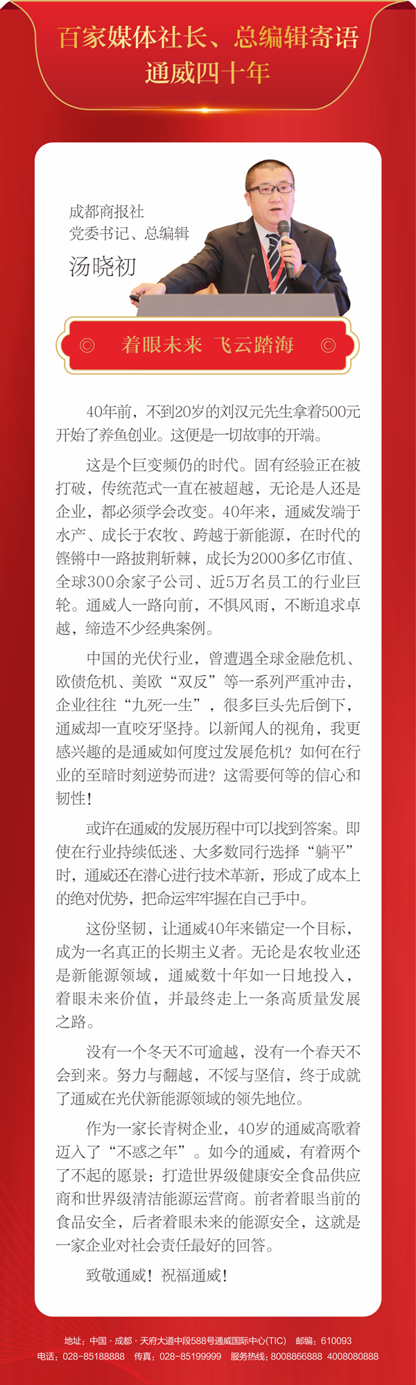 百家媒體社長、總編輯寄語通威四十年丨著眼未來,飛云踏海