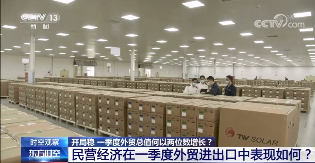 早在4月13日,央視《東方時空》播出“一季度我國外貿(mào)開局平穩(wěn)”報道,央視記者赴金堂基地現(xiàn)場采訪,實地了解企業(yè)外貿(mào)出口情況。報道指出,近期,一批價值近千萬元的光伏電池經(jīng)中歐班列運抵法國,這是通威太陽能今年出口歐盟的第五批光伏電池。今年一季度四川省民營企業(yè)進(jìn)出口同比增長一倍,對法國、意大利等國出口增速60%以上,其中,作為光伏行業(yè)領(lǐng)先企業(yè),通威太陽能今年已經(jīng)接到超4億元的出口訂單。這則報道,讓集團專項傳播小組對金堂基地有了一份新的認(rèn)識。