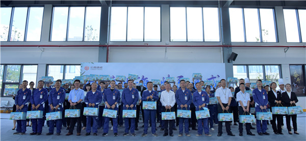 杜總代表劉漢元主席、李斌總裁向全體干部員工致以節日真誠的祝福。在活動中心、廠區151大廳、機修廠房前,領導們親自為干部員工代表送上節日禮盒。杜總表示,在昆明,王予波省長會見劉漢元主席時,對云南通威今天取得的成果給予高度認可與贊揚,成績的取得靠的是全員的努力與付出,正是大家用以廠為家、時不我待的精神為我們在滇西地區的發展贏得了一席之地。希望全員繼續發揚凝心聚力、只爭朝夕的精神,朝著公司達產達標的目標砥礪前行!