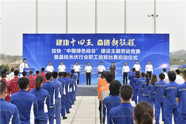 以賽促學展風采 以學促用強技能。5月31日下午,由四川省總工會主辦,樂山市總工會、樂山市人力資源和社會保障局、樂山市經濟和信息化局等單位承辦,永祥股份協辦的加快“中國綠色硅谷”建設主題勞動競賽暨晶硅光伏行業職工技能比賽在永祥股份正式啟動。四川省總工會二級巡視員黃小立,樂山市政協副主席、市委副秘書長、市委辦公室主任周鴻雁,五通橋區委書記劉勇出席。