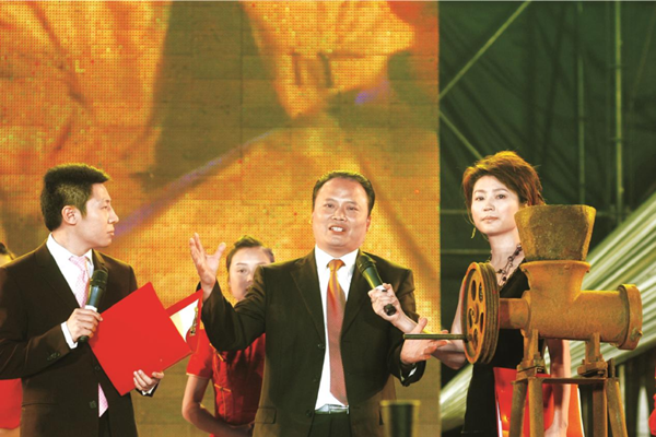 ▲通威成立15年晚會上,當看到創業時的絞肉機,管亞梅董事長百感交集