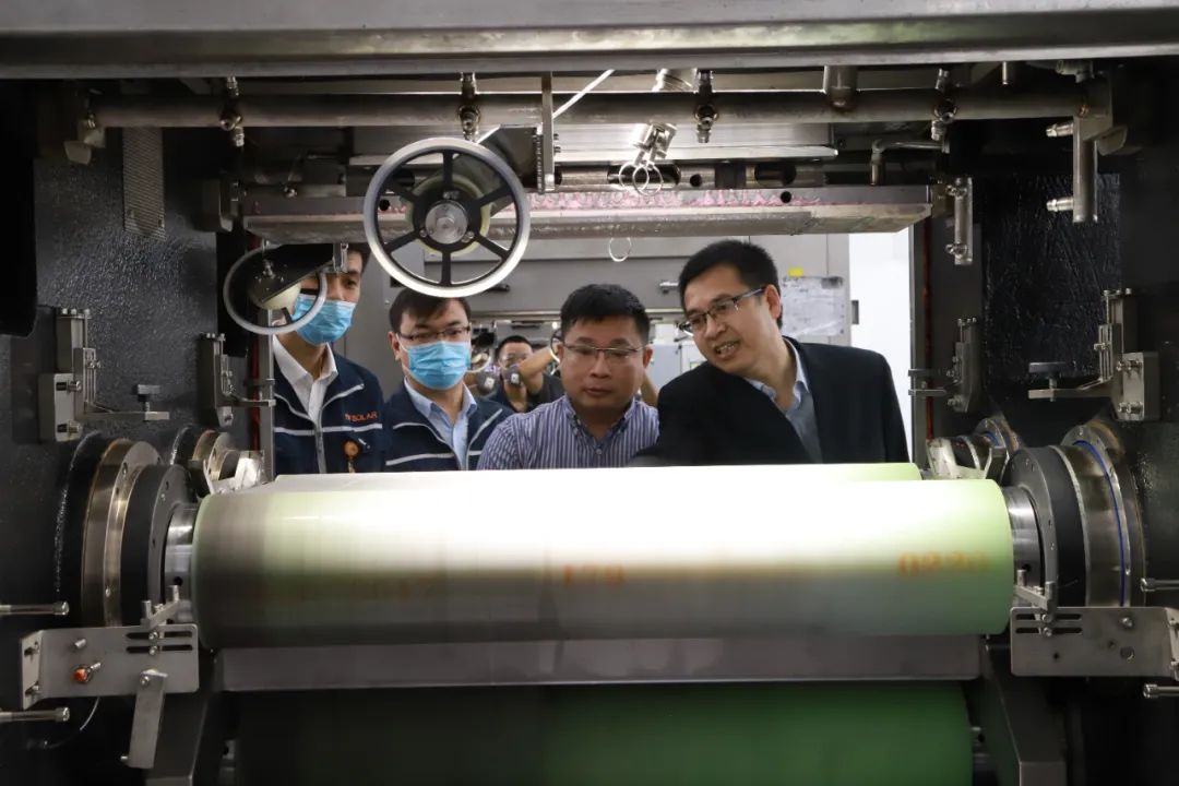 高管團隊在通合項目切片車間查看設(shè)備運行情況