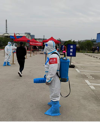 演練過(guò)程中,項(xiàng)目部?jī)擅刃蚓S護(hù)員變身“大白”,指引員工按照步驟有序進(jìn)行檢測(cè),環(huán)境維護(hù)員背起10L消毒箱對(duì)演練區(qū)域進(jìn)行循環(huán)消殺,工程維護(hù)員搬運(yùn)現(xiàn)場(chǎng)防疫物資……參加演練的通宇物業(yè)員工積極主動(dòng),為本次演練做好了服務(wù)保障工作。在項(xiàng)目全員的后勤保障下,通威太陽(yáng)能合肥基地員工自覺(jué)保持1米以上安全距離,有序進(jìn)行檢測(cè),確保了此次演練取得良好效果。