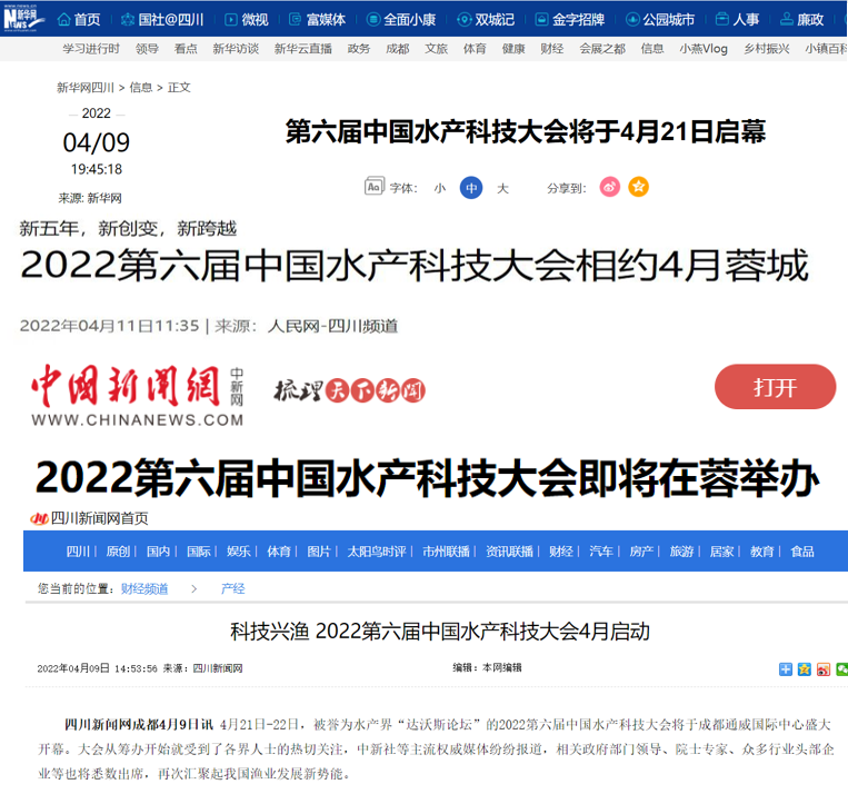 4月21日至22日,有著水產界“達沃斯論壇”之稱的2022第六屆中國水產科技大會將在成都通威國際中心舉行。根據疫情常態化防控要求,本次大會除組織線下會議外,還將同步采取線上直播方式,通過中新社、人民網、中國經濟網、雪球財經等十余家主流權威媒體、行業媒體、專業直播平臺進行全網全球直播,“云端”展現大會盛況。屆時,全球超百萬的水產行業從業者將通過線上直播,全程觀看和參與本次大會。