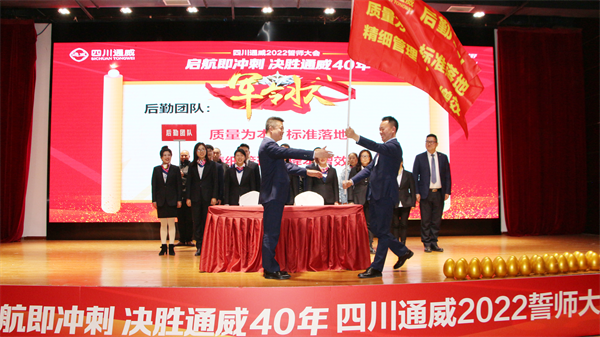 2月28日,四川通威舉行以“啟航即沖刺,決勝通威40年”為主題的2022年誓師大會。通威股份預(yù)混料片區(qū)總經(jīng)理劉如芳、華西一區(qū)總經(jīng)理成軍和、華西一區(qū)總經(jīng)理助理兼四川通威總經(jīng)理彭金鋼、華西片區(qū)采購總監(jiān)曾開建、華西一區(qū)財務(wù)總監(jiān)馬立群、品管總監(jiān)李敏英、四川公司總經(jīng)理助理兼生產(chǎn)部經(jīng)理尚兵、四川公司人行經(jīng)理白麗芬出席會議。四川通威全體干部員工220余人參會。
