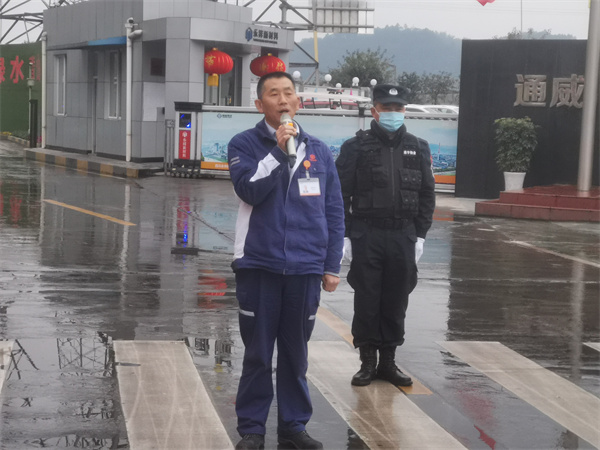 2月7日,春節后第一個升旗儀式,永祥新材料副總經理廖萬能作節后收心動員講話。