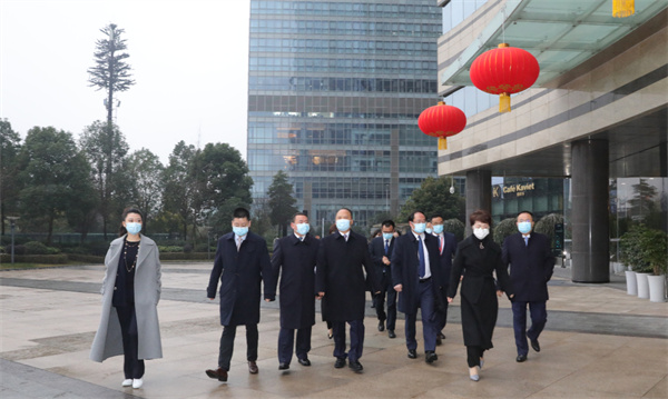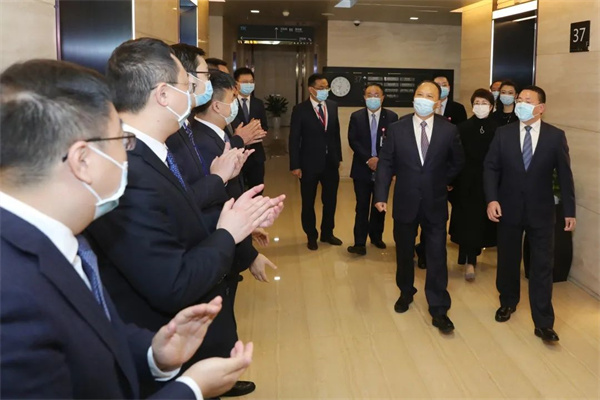 “新年好!”每到一處,劉主席都向大家揮手致以新春的問候,并仔細(xì)查看員工辦公環(huán)境,與大家親切交流,關(guān)心和了解員工上班第一天的工作情況。在聽取各部門負(fù)責(zé)人關(guān)于當(dāng)前重點工作和重點項目推進(jìn)情況的匯報后,主席對大家過去一年取得的優(yōu)異成績表示祝賀,并鼓勵大家在新的一年里再創(chuàng)佳績。