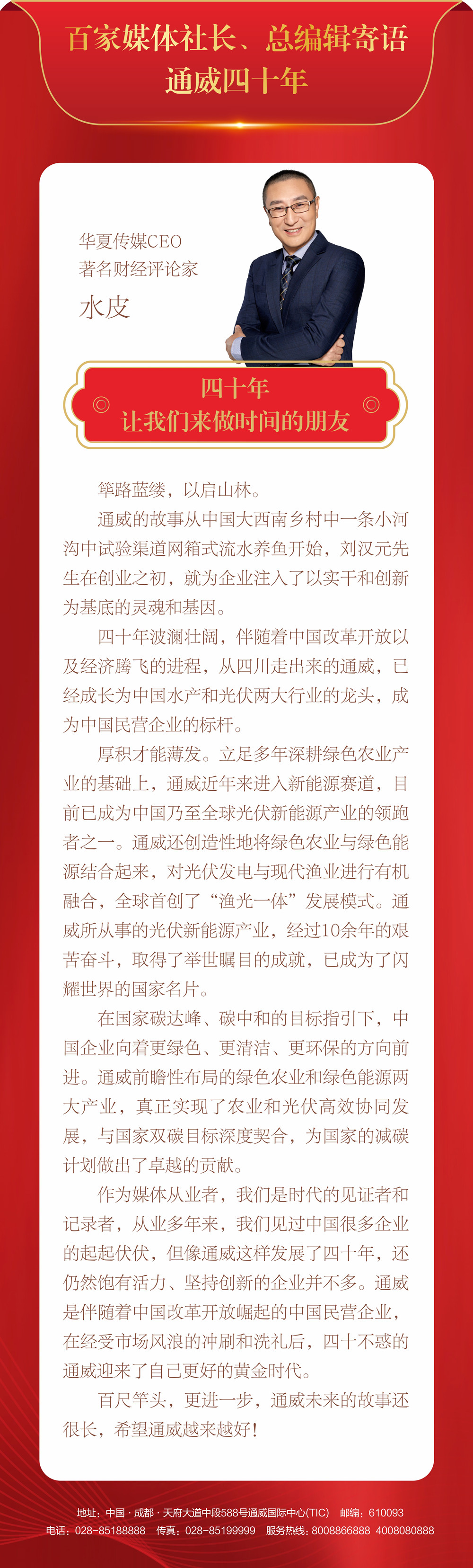 百家媒體社長、總編輯寄語通威四十年丨讓我們來做時間的朋友