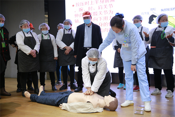 培訓(xùn)上,專業(yè)老師首先通過PPT演示詳細講解海姆立克的急救要點,指出心肺復(fù)蘇是面對人員突發(fā)心跳、呼吸驟停的情況下,救援人員利用人工呼吸和胸外科心臟按壓的方式,使氧氣進入血液并循環(huán)到達腦部、心臟等人體重要部位起到應(yīng)急救援的重要手段。講解完畢,培訓(xùn)老師邀請員工進行急救示范,配合使用模擬道具,對操作步驟進行逐一示范和演練,使參訓(xùn)人員深入理解和掌握心肺復(fù)蘇和海姆立克的操作要點。
