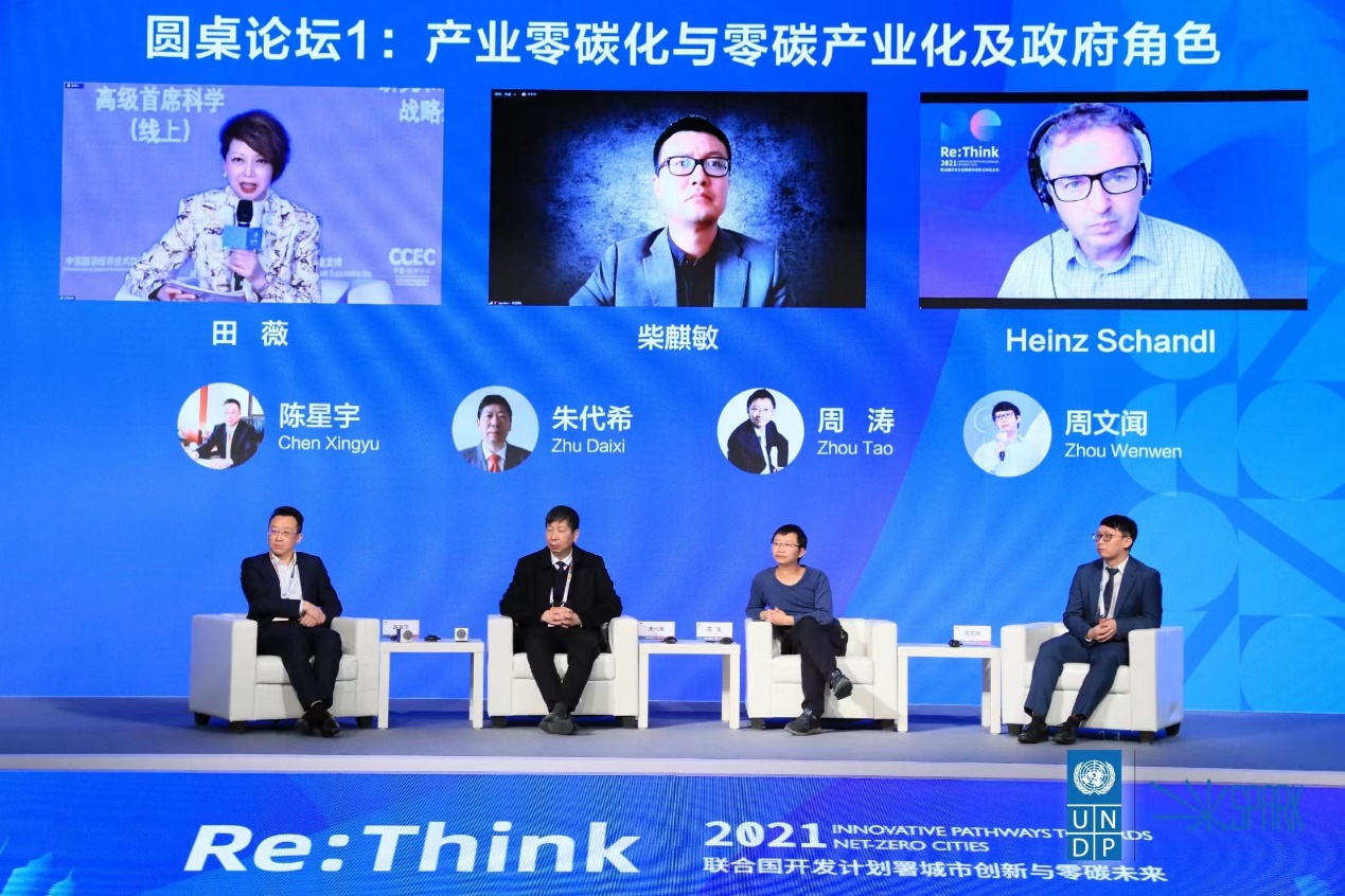 在“產業零碳化與零碳產業化及政府角色”圓桌論壇環節,陳總與達科特董事長兼總經理朱代希 ,新經濟發展研究院iNED執行院長周濤,阿里云能耗云總經理周文聞,澳大利亞聯合科學與工程研究組織高級首席科學家Heinz Schandl,生態環境部國家應對氣候變化戰略研究和國際合作中心戰略規劃部主任柴麒敏,圍繞政府在減碳和推動綠色技術規?;矫姘l揮的作用、城市尤其是高新區如何支持私營企業在節能減排和加速低碳轉型方面發揮作用,進行了深入探討。