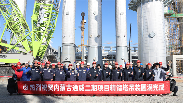 自2021年9月8日第一臺(tái)精餾塔下段起吊,歷時(shí)85天,共計(jì)18臺(tái)塔吊裝完成,絕對工期75天,吊裝效率屬行業(yè)前列。