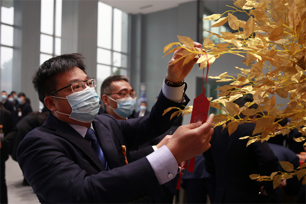 通威太陽能首席運營官蕭圣義帶領大家系掛祝福心愿卡