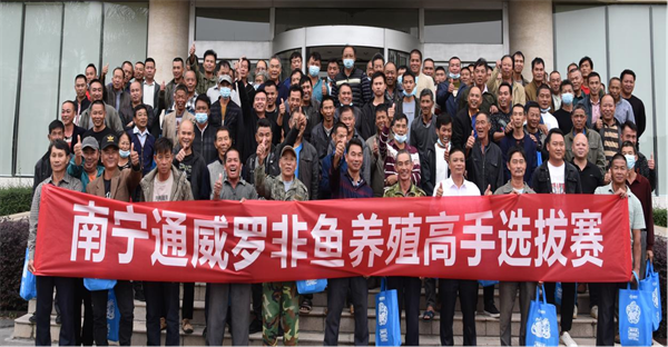 10月30日,南寧通威“高手在民間,料定您會贏”主題羅非魚養殖高手選拔賽正式啟動。通威股份蝦特料片區服務營銷總監余明泮,南寧水產牽頭人浦仕江和南寧通威水產服務工程師屈浩林及130余名養殖戶共同參與。
