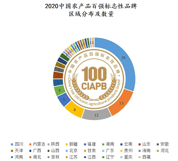 在眾多上榜品牌中不乏大家耳熟能詳的知名品牌,如眉山春橘、萬年貢米、煙臺蘋果、通威魚、陽澄湖大閘蟹、贛南臍橙、信陽毛尖、宣威火腿等,充分彰顯了我國農業品牌建設成果。值得一提的是,四川、內蒙古、陜西、新疆等地上榜品牌總量最多,充分展現了西部地區充分依托農業資源稟賦,打造特色農產品品牌的決心,以及取得的明顯成效。