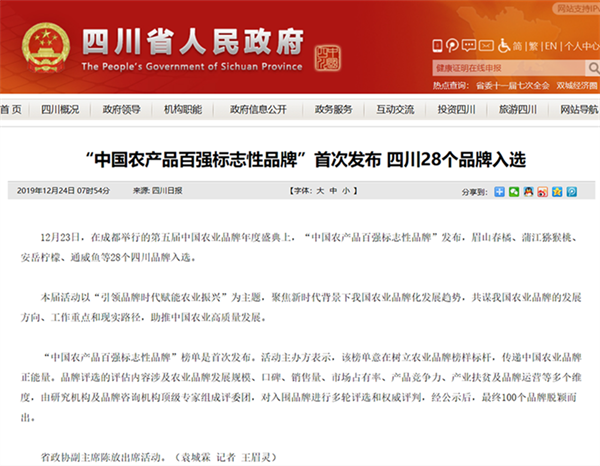 “中國農產品百強標志性品牌”自2019年首次啟動全國征評以來,受到社會各界的高度關注和行業的熱烈響應,吸引了來自四川、內蒙古、陜西、新疆、福建等30個省市區超過2000家品牌、40余種農產品積極參評。澳大利亞前總理、美國亞洲協會政策研究院院長陸克文,十一、十二屆全國政協副主席羅富和,農業農村部原副部長、黨組成員齊景發,中共中央對外聯絡部原副部長馬文普,巴基斯坦駐成都總領事館代總領事Mahmood Akhtar Mahmood,以色列駐成都總領事館副總領事Ehab Hino等中外嘉賓親臨見證,新華網、人民網、中國新聞網、農民日報、新京報等40余家主流權威媒體及行業媒體深度聚焦,發布新聞報道100余篇,四川、內蒙古等地方政府門戶網站紛紛轉載報道,品牌曝光量達上億次,入圍企業及評選得到了全社會的廣泛關注。