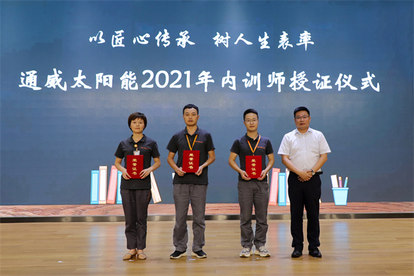 公司正處在快速發(fā)展階段,公司戰(zhàn)略落地需要大量?jī)?yōu)秀人才的支撐,人才隊(duì)伍建設(shè)事業(yè)任重而道遠(yuǎn),內(nèi)訓(xùn)師隊(duì)伍作為人才建設(shè)主力軍起著至關(guān)重要的作用。公司的人才培養(yǎng)、經(jīng)驗(yàn)萃取和傳承都離不開(kāi)內(nèi)訓(xùn)師們的辛勤付出。未來(lái),光伏學(xué)習(xí)中心將持續(xù)加強(qiáng)通威太陽(yáng)能執(zhí)教隊(duì)伍的建設(shè),整合與挖掘企業(yè)內(nèi)部人力資源優(yōu)勢(shì),為優(yōu)秀的帶教導(dǎo)師、內(nèi)訓(xùn)師賦能升級(jí),助力員工與公司共同成長(zhǎng)和發(fā)展。