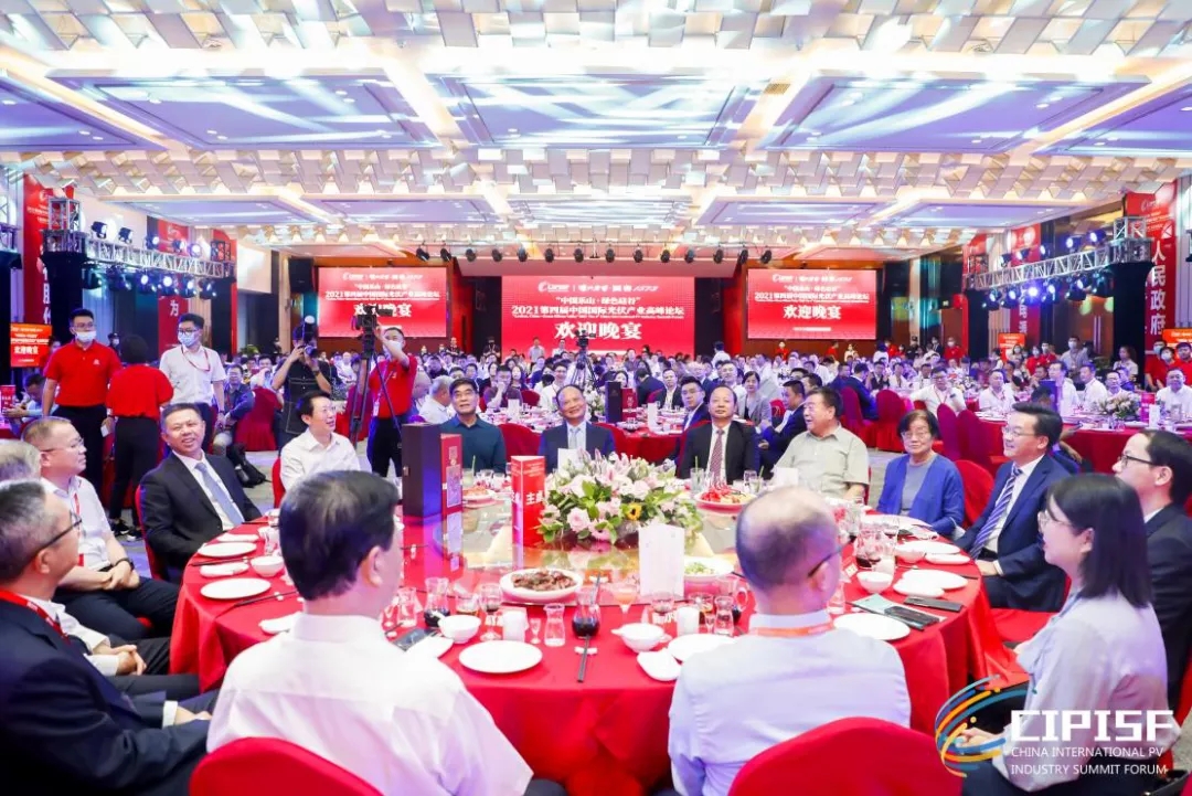 晚宴嘉賓云集,十二屆全國政協(xié)常委、中國石油化工集團(tuán)有限公司原董事長、黨組書記,長江商學(xué)院實(shí)踐教授傅成玉,國務(wù)院原參事、中國投資協(xié)會能源投資專委會專家主席石定寰,中國光伏行業(yè)協(xié)會名譽(yù)理事長王勃華,中國有色金屬工業(yè)協(xié)會原副會長、硅業(yè)分會會長趙家生,中共樂山市委書記馬波,中共樂山市委副書記、代理市長陳光浩,四川省經(jīng)濟(jì)合作局黨組書記惠朝旭,中共眉山市委副書記、代理市長黃河,中共保山市委常委、常務(wù)副市長杜春強(qiáng),中共金堂縣委書記、淮州新城黨工委書記鐘靜遠(yuǎn),十一屆全國政協(xié)常委、全國人大代表、全國工商聯(lián)新能源商會執(zhí)行會長、通威集團(tuán)董事局劉漢元主席,中國光伏行業(yè)協(xié)會名譽(yù)理事長、民建中央常務(wù)委員、天合光能股份有限公司董事長兼首席執(zhí)行官高紀(jì)凡,中共樂山市委常委、常務(wù)副市長黃平林,樂山市人民政府副市長廖克全,中共樂山市委秘書長李良,樂山師范學(xué)院黨委常委、副校長李方裕,保山市昌寧縣人民政府縣長楊斌斌,清華大學(xué)核能與新能源技術(shù)研究院原教授、博導(dǎo)張阿玲,無錫市太極實(shí)業(yè)股份有限公司董事長,十一科技董事長、黨委書記趙振元,江蘇環(huán)太集團(tuán)董事長王祿寶,常州亞瑪頓股份有限公司董事長林金錫,特變電工股份有限公司總裁黃漢杰,華為數(shù)字能源技術(shù)有限公司首席運(yùn)營官、華為智能光伏業(yè)務(wù)總裁陳國光,陽光電源股份有限公司高級副總裁顧亦磊,通威股份董事長謝毅,瀘州老窖股份有限公司黨委委員、董事、紀(jì)委副書記熊娉婷,大全集團(tuán)總裁徐翔,晉能清潔能源科技股份公司總經(jīng)理?xiàng)盍⒂眩p良集團(tuán)有限公司董事、總裁馬培林,晶科能源副總裁樊華,華為數(shù)字能源技術(shù)有限公司中國區(qū)副總裁唐杰靈,東莞市盛雄激光先進(jìn)裝備股份有限公司董事長陶雄兵,蘇州沃特維董事長何培林,新疆大全新能源股份有限公司副董事長張龍根,無錫尚德太陽能電力有限公司執(zhí)行總裁何雙權(quán),無錫上機(jī)數(shù)控股份有限公司總經(jīng)理?xiàng)铌唬K州騰暉光伏技術(shù)有限公司總裁董曙光,美科太陽能總裁王藝澄,福建安泰新能源科技有限公司總裁黃麗琴,無錫壓縮機(jī)股份有限公司董事李小寧,上海發(fā)那科機(jī)器人有限公司市場部總經(jīng)理戴琦,中國有色金屬工業(yè)協(xié)會硅業(yè)分會秘書長馬海天,中國光伏品牌研究院秘書長、通威集團(tuán)副總裁黃其剛,永祥股份董事長兼總經(jīng)理李斌,通威太陽能董事長兼總經(jīng)理周丹,通威股份光伏事業(yè)部總裁陳星宇,通威新能源執(zhí)行董事兼總經(jīng)理邱艾松,通威股份光伏商務(wù)部總經(jīng)理劉舒琪等領(lǐng)導(dǎo)嘉賓出席。