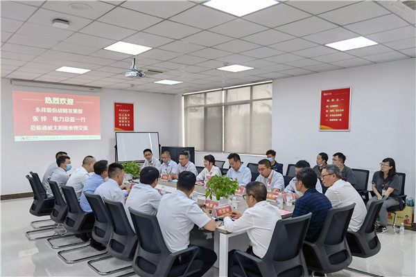 8月30日,永祥股份戰(zhàn)略發(fā)展部電力總監(jiān)張鋅一行蒞臨通威太陽(yáng)能雙流基地參觀交流,通合新能源(金堂)有限公司總經(jīng)理助理羅曉云熱情接待并參與座談。