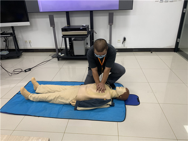 心肺復蘇術的講解中,培訓講師為大家詳細講解了胸外心臟按壓和人工呼吸的步驟以及其中要注意的關鍵細節并親自示范。參訓員工紛紛踴躍參加實戰模擬,大家共同討論,互相學習,培訓取得了預期的效果。