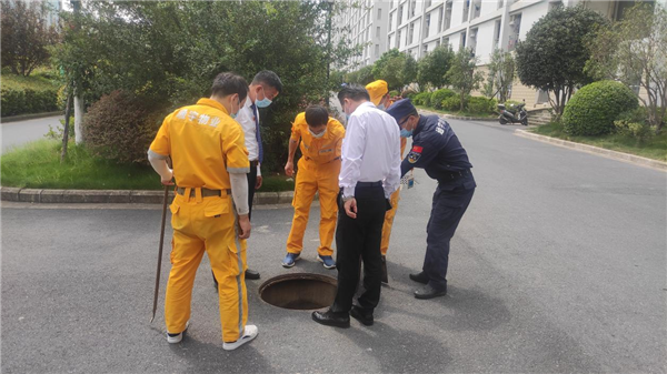 通威國(guó)際中心排查小組檢查排污水井
