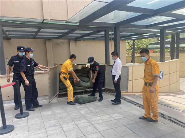 為積極應(yīng)對(duì)汛期,做好防汛工作,通宇物業(yè)各項(xiàng)目提前針對(duì)防汛工作要點(diǎn)及職責(zé)分工進(jìn)行梳理,制定了完善的防汛應(yīng)急預(yù)案并形成文件下發(fā),落實(shí)到人。8月5日上午9點(diǎn),通威國(guó)際中心項(xiàng)目率先開(kāi)展了2021年防汛安全隱患排查工作,由公司總經(jīng)辦團(tuán)隊(duì)帶隊(duì),逐一檢查擋水板、防汛沙袋、雨衣雨靴等防汛物資儲(chǔ)備情況,確保物資配備充分、規(guī)范存放,同時(shí)對(duì)地下室出入口、人防通道、地下車(chē)庫(kù)、非機(jī)動(dòng)車(chē)庫(kù)、排污泵、下水道、屋頂天面地漏、廣場(chǎng)外圍排水道、樓宇外立面、外掛空調(diào)、戶(hù)外廣告等重點(diǎn)防汛區(qū)域進(jìn)行仔細(xì)排查,找出各種潛在隱患并有效整改,杜絕安全事故發(fā)生。