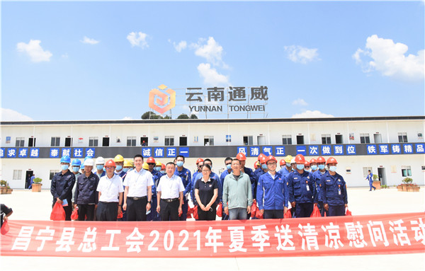 8月5日,云南省昌寧縣總工會副主席李文杰、王吳喻一行蒞臨云南通威開展“夏日送清涼”慰問活動。云南通威黨總支書記、總經理助理閆一夫,云南通威工會主席、人行部部長周旭及相關人員出席。