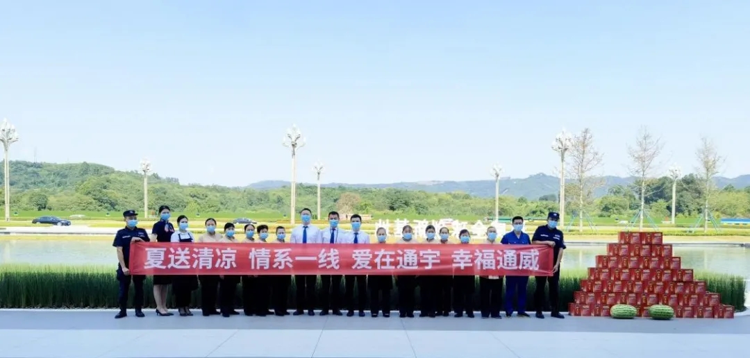 八月以來,全國各地的氣溫節節攀升,多地爆發橙色高溫預警,此外,全國范圍內呈疫情復發趨勢,成都也出現多例確診病例。在嚴峻的形勢下,遵照通威集團董事局劉漢元主席的指示,通宇物業全體員工不懼困難和高溫,始終堅守崗位,奮戰在抗疫一線。在橙色高溫預警下,為關心一線戰疫員工,8月4日,通威集團禚玉嬌總裁,集團黨委副書記、副總裁黃其剛帶隊,代表集團董事局劉漢元主席親切慰問通威國際中心奮戰在抗疫一線的物業員工,并送上清涼福利。
