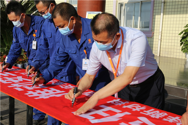 隨后,參會人員依次在標語上簽上自己的名字,默默的將落實安全責任牢記于心,并表示在安全生產中將充分發揮主觀能動性,把安全生產記于心、踐于行,肩負起安全責任,自覺維護安全生產。