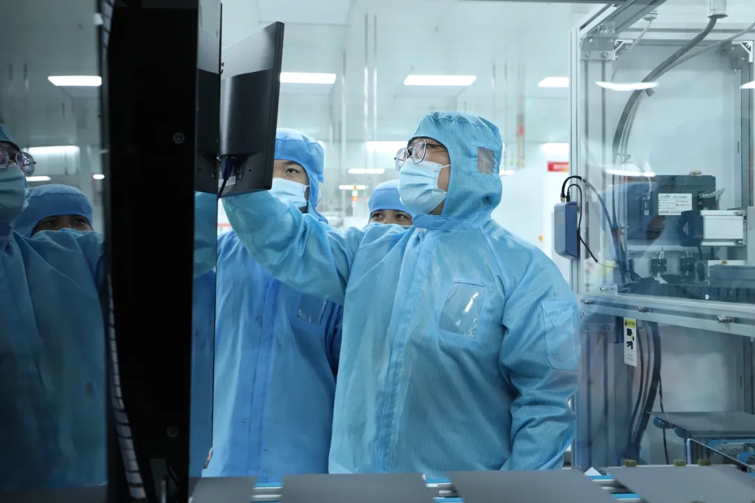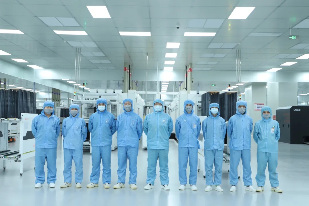 王亞楠第一次到眉山基地時(shí)還是一片荒蕪,那時(shí)車間剛剛搭起鋼結(jié)構(gòu)。2020年4月份正式入駐時(shí),食堂還沒(méi)有建起來(lái),加上疫情期間周圍沒(méi)有飯店開(kāi)門,他和部門30多名員工吃了將近2個(gè)月的盒飯,毫無(wú)怨言。車間裝機(jī)定位需要在地面上畫(huà)出機(jī)臺(tái)位置,剛開(kāi)始畫(huà)線的時(shí)候,車間內(nèi)線路極不穩(wěn)定,經(jīng)常跳電,于是他就打著手電筒繼續(xù)畫(huà)線。微弱的光亮下,每一筆一畫(huà)都承載著他的付出和心血。建廠初期,為了保障項(xiàng)目進(jìn)度和良率提升,王亞楠帶領(lǐng)部門員工經(jīng)常加班到深夜。有一次停電后復(fù)機(jī)時(shí),機(jī)臺(tái)問(wèn)題和故障非常多,他就帶領(lǐng)部門工程師一一排查,忙到凌晨,直到看著設(shè)備正常運(yùn)轉(zhuǎn)起來(lái),才放心下班。