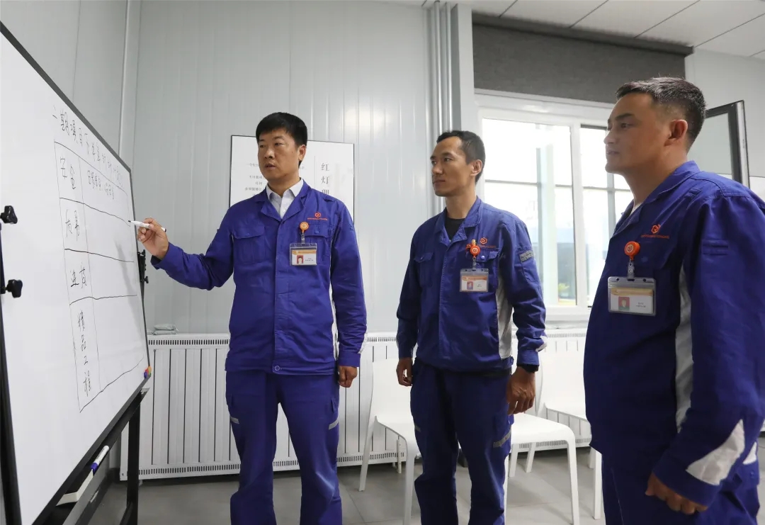 內蒙古通威高純晶硅二期項目計劃組組長、安裝組組長武永斌與同事討論項目建設細節