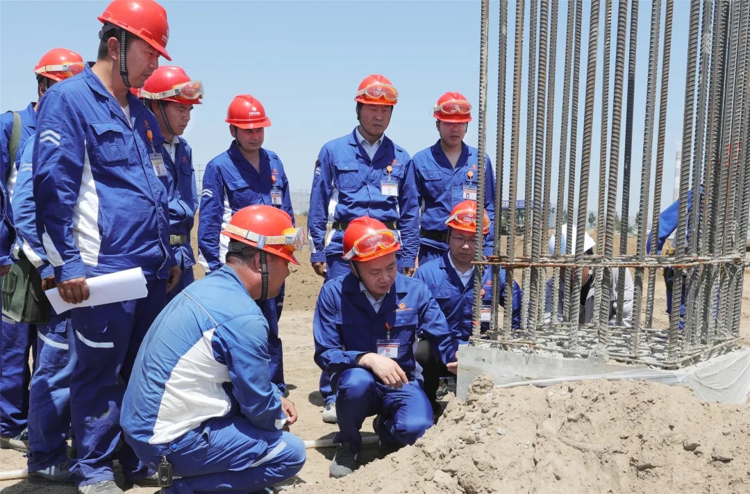 11點5分,陽光肆無忌憚地直射下來,高溫炙烤著大地,但阻擋不了內蒙古通威高純晶硅二期項目建設的熱潮。運輸車、灑水車輛來回穿梭,打樁機、挖掘機、吊裝機轟鳴,在高高低低的塔吊下,各裝置區建設初具雛形,員工精神飽滿,有序開展各項工作。袁總走進施工現場,查看混凝土澆筑情況,與參建單位對照施工計劃表,了解施工痛點堵點,提出糾偏措施,把項目建設協調會開到現場,確保項目建設有序高效推進。