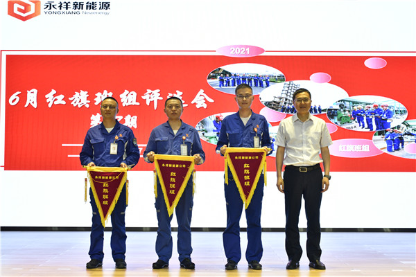 7月6日,永祥新能源成功召開6月(二十七期)紅旗班組評選會。永祥股份安全環??偙O楊武明,永祥新能源常務副總經理羅周,永祥新能源總經理助理兼生產部長涂大勇及各部門、工段負責人出席會議并擔任評委,各參評班組及員工100余人參加評選會。