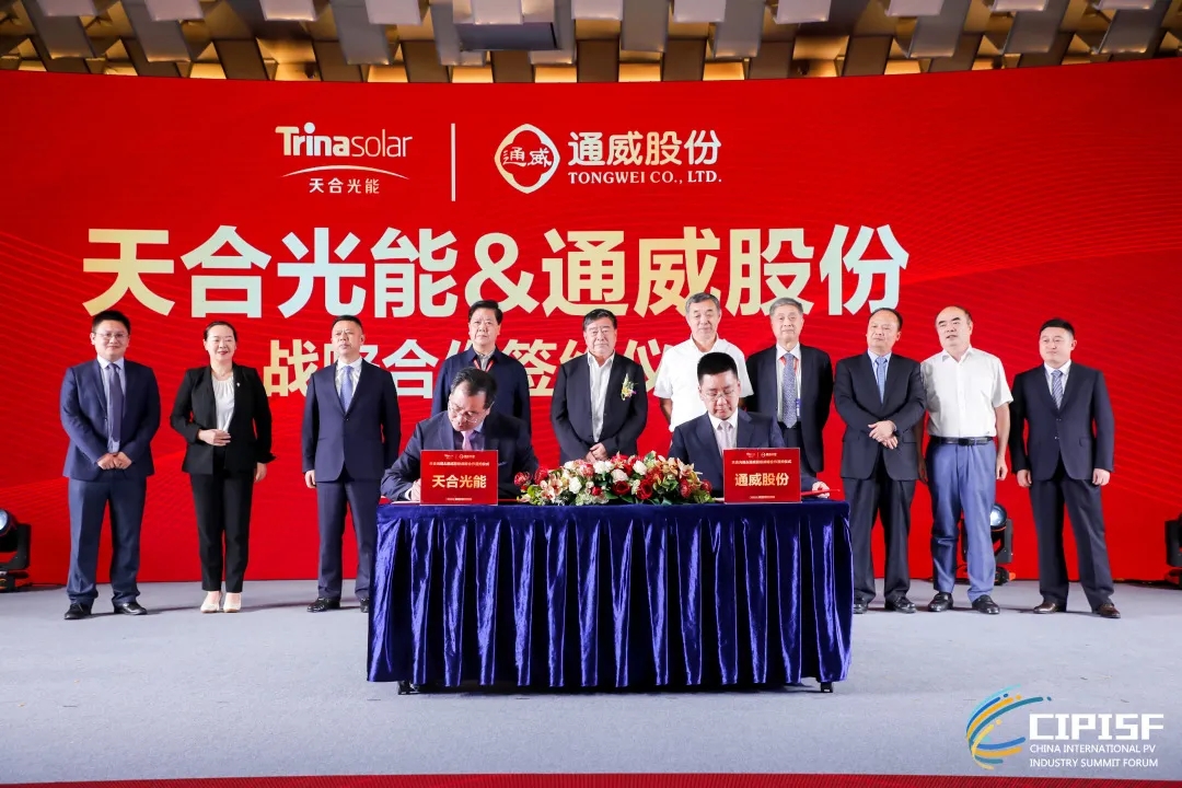 第三屆大會(huì)期間,通威股份與天合光能雙方簽署戰(zhàn)略合作協(xié)議