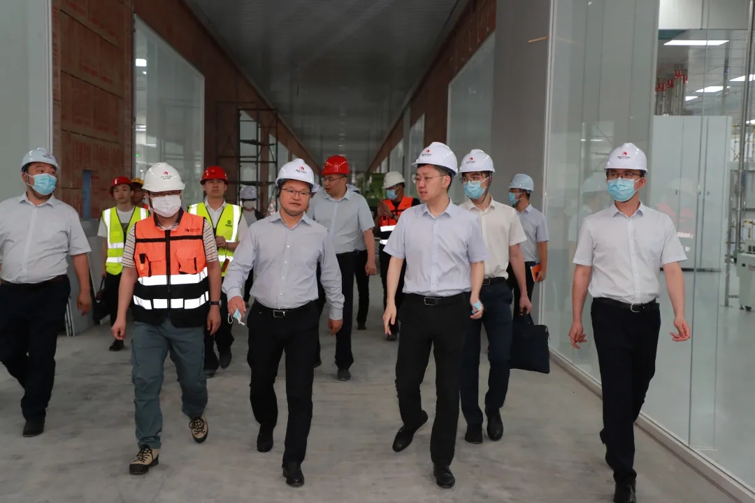 謝毅董事長還陪同朱和金副縣長視察基地,現場查看正在組裝調試中的異質結電池生產車間、石墨舟房等,深入查看生產線安裝調試、設備維護等情況,詳細詢問技術細節。謝毅董事長強調,要在保障安全的前提下,加快車間設備調試進度,提升車間設備、工藝穩定性,實現各項工作順利推進。