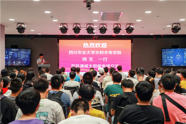6月23日,四川農(nóng)業(yè)大學(xué)水利水電學(xué)院師生一行蒞臨通威太陽(yáng)能雙流基地參觀交流,光伏學(xué)習(xí)中心老師熱情接待。