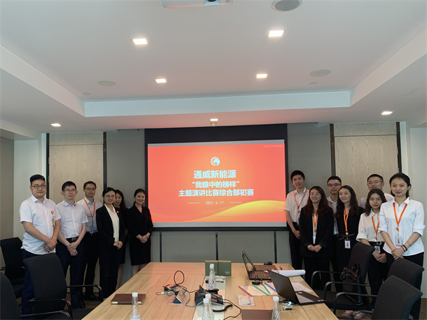 為積極響應(yīng)2021年度集團(tuán)企業(yè)文化建設(shè)主題“表率是最好的領(lǐng)導(dǎo)方法”,將通威優(yōu)秀企業(yè)文化與管理經(jīng)營(yíng)相結(jié)合,弘揚(yáng)榜樣精神,6月17日,通威新能源綜合部年度主題演講比賽正式啟動(dòng)。此次比賽以“我眼中的榜樣”為主題,邀請(qǐng)了通威新能源總經(jīng)理助理何一弘、綜合部投資組經(jīng)理唐霖、采購(gòu)組經(jīng)理胡琪、法務(wù)合規(guī)組肖興兵、人事行政組李亞擔(dān)任比賽評(píng)委,來(lái)自綜合部的九位選手參加比賽。