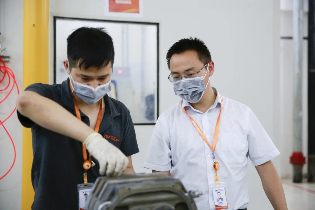 通威太陽能電池五廠團隊秉承謝毅董事長時常說的“放平心態(tài)、認清自我、腳踏實地、持之以恒”的指導思想,戒驕戒躁,踏實走好往后的每一步,為家人、為公司、為社會貢獻團隊的力量。他們營造了良好的團隊氛圍,在工作中及時解決員工遇到的問題,注重人才的培養(yǎng),積極指導員工、帶領員工共同進步。同時也會抱著“戰(zhàn)戰(zhàn)兢兢、如履薄冰”的工作態(tài)度,遇到問題,解決問題,不斷成長,不斷進步,不斷向目標靠近。