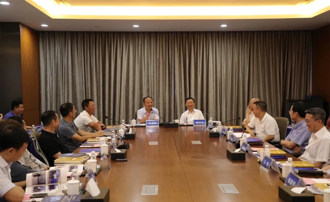 6月10日,成都樂山商會會長、海天水務集團股份公司董事長費功全,名譽會長、四川德勝集團董事局主席宋德安帶領商會企業家一行蒞臨通威考察。十一屆全國政協常委、全國人大代表、通威集團董事局劉漢元主席熱情接待并座談,集團副總裁胡榮柱、股份光伏事業部總裁陳星宇陪同接待。