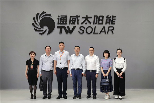 6月8日,中國民生銀行股份有限公司總行戰略客戶部副總經理張勁松一行蒞臨通威太陽能眉山基地參觀交流,通威太陽能眉山基地總經理助理蔣衛朋熱情接待。