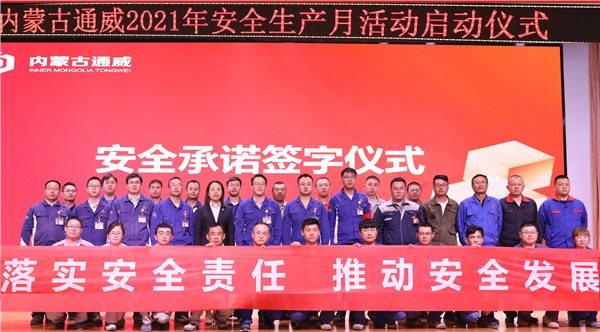為全面貫徹落實國務(wù)院安委會辦公室、應(yīng)急管理部《關(guān)于開展2021年全國“安全生產(chǎn)月”活動的通知》精神,2021年6月2日,內(nèi)蒙古通威召開以“落實安全責(zé)任,推動安全發(fā)展”為主題的“安全生產(chǎn)月”啟動儀式,內(nèi)蒙古通威副總經(jīng)理張習(xí)松出席活動,助理工程師以上管理人員、安全管理人員及承包商代表共計100余人參加此次活動,并為安全生產(chǎn)作出莊嚴(yán)承諾。