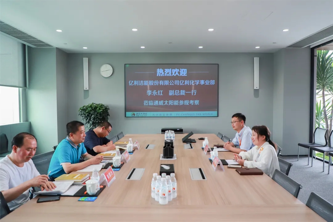 5月27日,億利潔能股份有限公司化學(xué)事業(yè)部副總裁李永紅一行蒞臨通威太陽能雙流基地考察交流,通合新能源(金堂)有限公司總經(jīng)理助理羅曉云熱情接待。