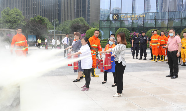 為有效地預防和處置突發火災事故,提高應對事故的能力,增強員工的消防意識,強化員工有序疏散意識和疏散流程,保障大樓工作人員的生命、財產安全,5月28日下午,在集團副總裁黃其剛的統一安排和部署下,由通宇物業組織的“通威國際中心2021年上半年消防疏散應急演練”順利舉行。此次消防演練由通宇物業秩序部牽頭,通威國際中心入駐企業代表、餐廳工作人員、物業全體員工近150人參加演練,本次還邀請到了社區和消防隊進行現場指導和講解,讓大家充分了解消防知識和消防器材使用方法。