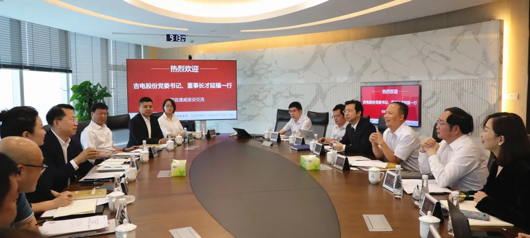 5月26日,吉電股份黨委書記、董事長才延福一行考察通威。十一屆全國政協常委、全國人大代表、通威集團董事局劉漢元主席熱情接待并座談,通威股份副董事長嚴虎、通威新能源執行董事兼總經理邱艾松陪同接待。