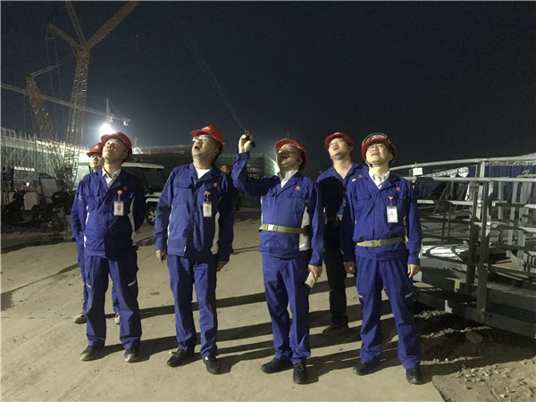 在二期項目建設現場,李總對夜間將仍然堅守在崗位的員工表示肯定,對大家共同努力促進工程安全高質量推進努力表示贊許,希望大家要繼續發揚一期項目建設時拼搏到無能為力,努力到感動自己的精氣神,鼓足干勁抓工程。李總表示,二期項目建設全面進入安裝階段,土建和安裝交叉施工作業明顯,一定要做到科學調度,提前規劃、合理安排、高效施工,同時要特別注重安全防護,尤其是夜間施工安全的保障,安全是一切工作的前提,只有安全才能再造精品工程!全體干部員工要卯足干勁,齊心協力,高效推進二期項目建設!