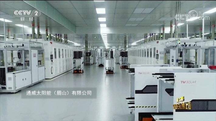 新的技術升級了電池片反面的鍍膜材料,將電池的銀電極與硅片隔離開,從而進一步提高電池光電轉換效率。升級后的通威太陽能電池片,光電轉化效率高達24%,創造了新的世界紀錄。在通威全球領先的智能制造車間,像這樣的電池片,在這條新的生產線,每年可以產出超過5040萬片,如果把它們全部安裝,每年可以發電約4.5億度。